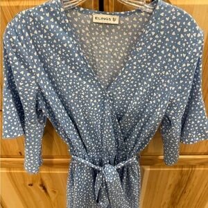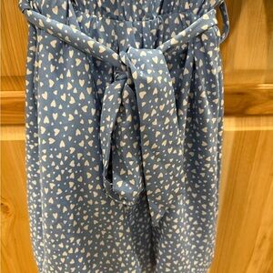 Elings Blue With White Heart Patterned Elastic Toe Waist Romper Onsie Size S