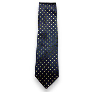 Elio Cantoni Navy Yellow Diamond Pattern Designer Tie Mens Italian Made 55 Inch