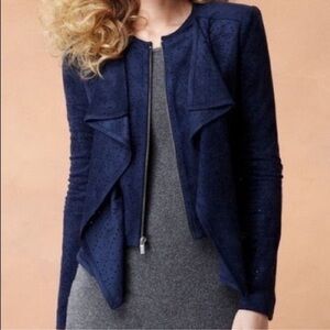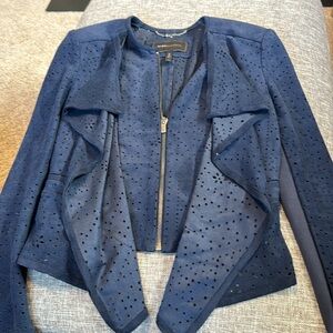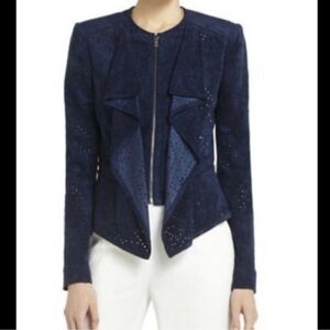 BCBGMAXAZRIA Eliot Jacket, polyester, Cutout/Perforated Embellished, Draped, Full Zip, Crewneck, unlined, 24” sleeve, 18”-23” length, 30” bust, new with tags, retails for $298, in great condition