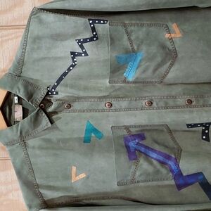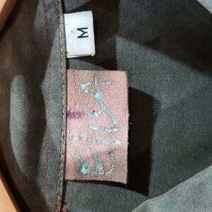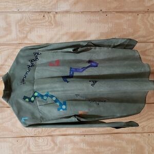 Elisa Artwork Olive Green Silk Painted Button Front Top Size M
