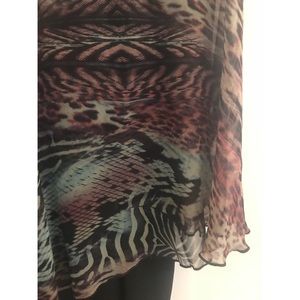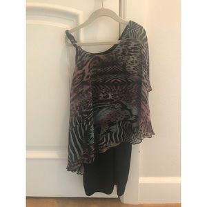 Elisa B print chiffon dress. One flowy shoulder with and one rolled strap. Great condition! Make me an offer!