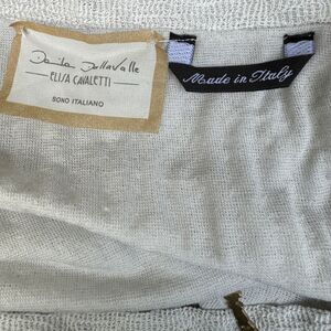 Add elegance and European craftsmanship to your closet with this Elisa Cavaletti by Daniela Dallavalle embellished knit top. Made in Italy, this XS top features beautiful metal detailing along the scoop neckline, mixed textured knit, and a soft, comfortable drape. Unique and artsy perfect for dressing up jeans or pairing with tailored pants.