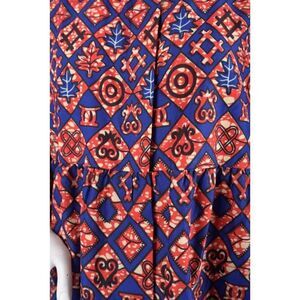 Elisa Mama Womens Shirt Maxi Dress M Blue Red Leaf Print Button Front NWT