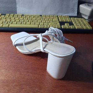 Elisabet Lang Lace Up Open Toe Block Heel White Sz8 Sandals PreLoved Good Condition
