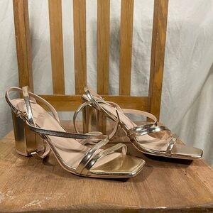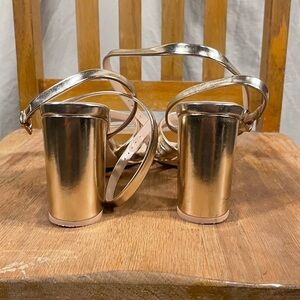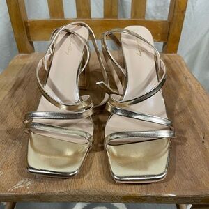Elisabet Tang Strappy Chunky Gold Square Toe Heels Size 11