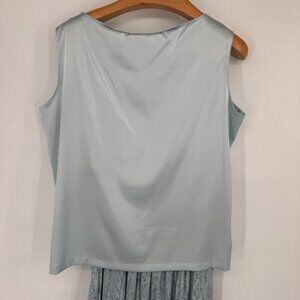 This lovely women's set includes a V-neck sleeveless top and a coordinating skirt, both crafted from polyester. The top is size 14, while the skirt is size 16. The soothing blue hue adds a calming touch to the ensemble.