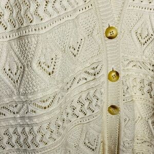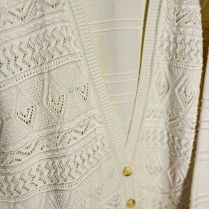 This elegant white knit cardigan sweater is perfect for any occasion. Its intricate design adds a touch of sophistication to your wardrobe. Stay cozy and stylish with this must-have piece.