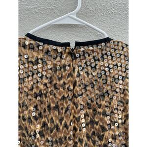 Elisabeth Liz Claiborne Womens Dress Size 16 Animal Print Sequin Short Sleeve