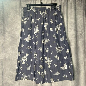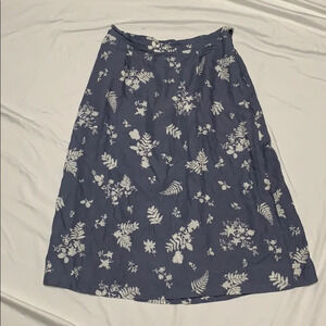 Elisabeth Petites by Liz Claiborne size 14P blue skirt with white leaf print. Side zip and two button closure. Two pockets. In good preowned condition! Measurements taken when skirt is lying flat and are approximate.