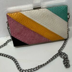Elisabeth Weinstock snake rainbow chain purse bag Purse is in excellent condition. Hardware is silver. Colors are pink white green and yellow. Measures 8 x 5