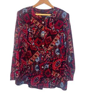 Elisabeth Williams Maximalist Print VTG Blouse Crested Buttons Size XL Statement