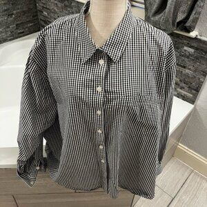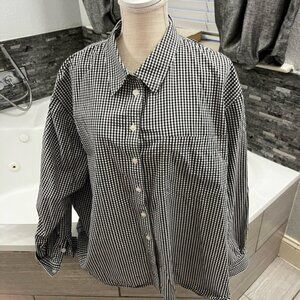 Elisabeth Women's Plus Size 22 Black and White Gingham Longsleeve Button Down