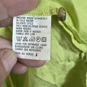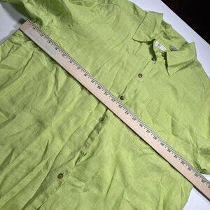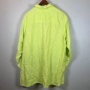 Elisabeth Women's Size 16 Button Up Shirt 100% Linen Long Sleeves Lime Green