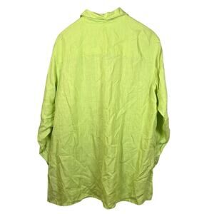 Elisabeth Women's Size 16 Button Up Shirt 100% Linen Long Sleeves Lime Green