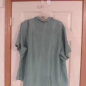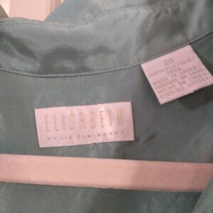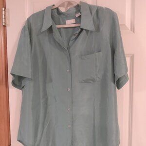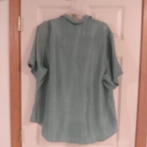 Elisabeth by Liz Claiborn: Woman's green short sleeve silk blouse. Size 20.