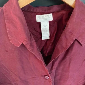 Elevate your wardrobe with this stunning Elisabeth by Liz Claiborne Petite dress shirt. Crafted from 100% silk, this button-up shirt boasts a collared neckline and wide straps for a comfortable fit. The shirt features a solid red pattern with button accents and a relaxed fit, making it perfect for any occasion, from casual to formal. This dress shirt is a must-have for any fashion-forward woman. Its classic design and colorful accents make it a versatile piece that can be dressed up or down. Whether you're heading to work or out for a night on the town, this shirt is sure to turn heads. Add it to your collection today!
