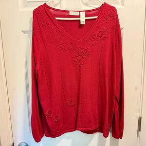 Elisabeth by Liz Claiborne Red Pullover wi Crochet Flowers Womens 1X (14) Longsleeve