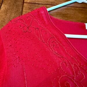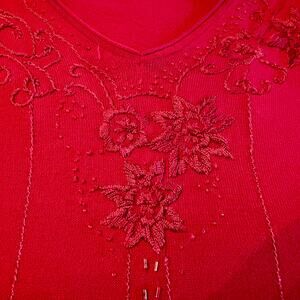 Elisabeth by Liz Claiborne Red Pullover wi Crochet Flowers Womens 1X (14)