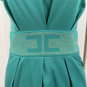 Elisabetta Franchi Celyn B Chain Detail Green Mini Dress Gold Bling IT 40 US 4