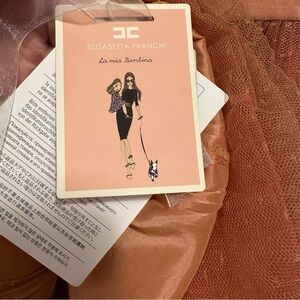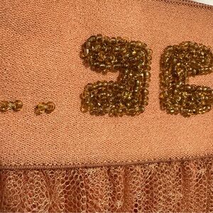 Layered skirt. Tulle. Rose gold color. Made in Italy. Beautiful beading on waistband says “Se Vuoi Puoi”.