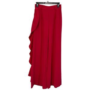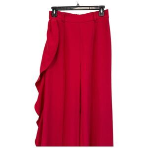 Elisabetta Franchi One Side Ruffle Wide Leg Pants In Red Size 42
