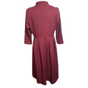 The Elisabetta Franchi dress in burgundy with polka dots is a stylish and versatile piece suitable for various occasions such as parties, casual outings, workwear, and business events. With a flattering fit and flare style, 3/4 sleeves, V-neckline, and button closure, this midi-length dress is designed to make a statement. The classic Italian design, combined with its designer brand and red color, makes it a standout piece in any wardrobe. Unfortunately, the dress is missing a belt, which can easily be added to complete the look.