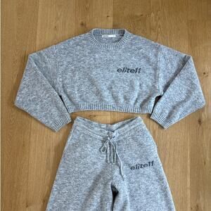 Elite Eleven Knit Crew Neck Sweater & Wide Leg Pants Size S & XS Gray