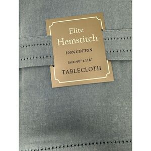 Elite Hemstitch 100% Cotton Light Blue Tablecloth 60" x 118" NWT