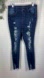 🏷️ Juniors distressed ripped torn holes holy dark wash blue pants raw hem