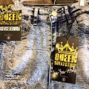 Elite Jeans Queen Collection High Rise Distressed Denim Bermuda Shorts Size 9. New with tags. From smoke free home.