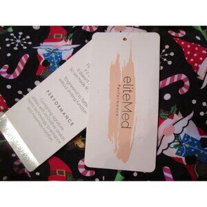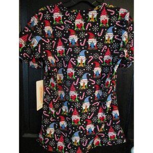 Elite Med Gnome Candy Cane Snowflake Holiday Christmas Scrub Top Size Large L