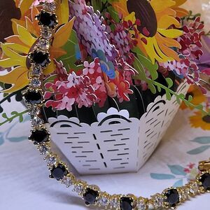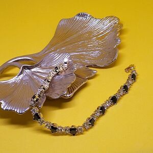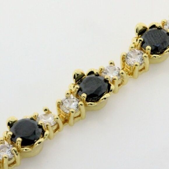 Elite New 14.95ctw Black Spinal & White Topaz Bracelet, 7.5 inches,