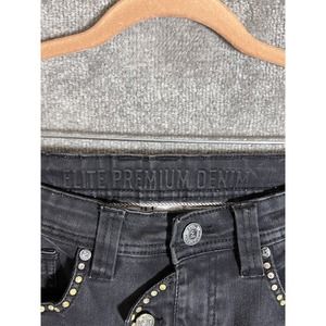 Elite Rhinestone Studded Distressed Moto Jeans Mens Size 30x32 Stretch Black Denim