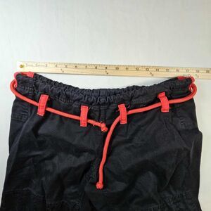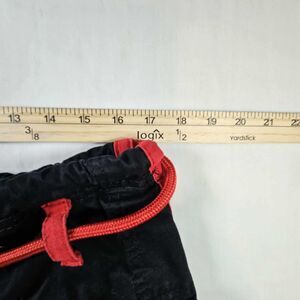 These Elite pants feature a unique design with a bold red rope-style drawstring and belt loops against a black cotton fabric. They have an elastic waist, reinforced panel stitching, and a cropped leg fit, giving them a versatile streetwear or martial arts training look.