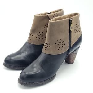 Free USPS Priority Mail shipping on these chic Elite by Corkys Barbara booties in a versatile black and brown colorway, women's size 10, featuring a sleek leather upper with subtle tonal accents, convenient side zipper entry, and a low block heel for comfortable all-day wear with a touch of bohemian flair. Please check photos for any damage and condition to ensure they meet your expectations. If you have questions or offers, feel free to message me!