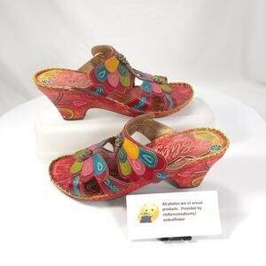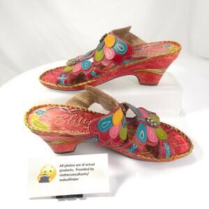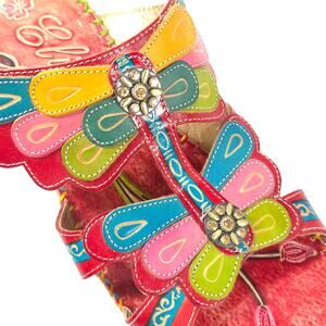 Elite by Corkys Nectar Floral Wedge Sandals Womens Size 7 Red Multi