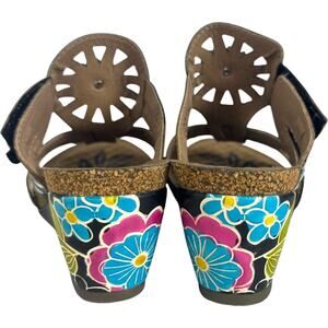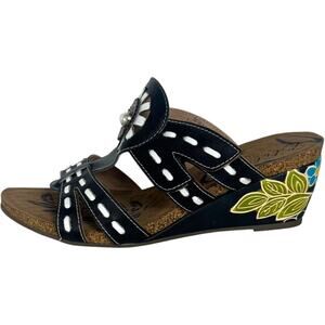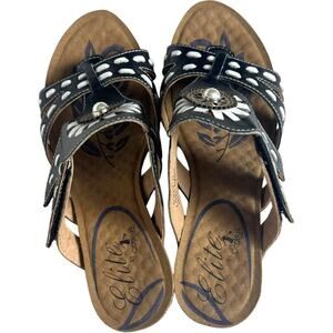 Elite by Conkys Scilly Leather Wedge Slide Sandals Black Floral Women's Size 11