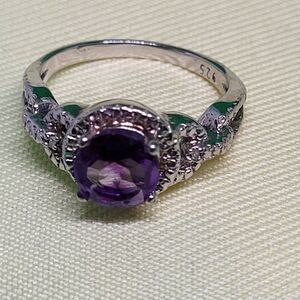 Order # 13291026 Genuine Amethyst & Diamond .925 Sterling Silver Ring Size 6