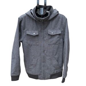 Elixir Mens Jacket Gray Tweed Full Zip Hooded Insulated Lining Size L Streetwear