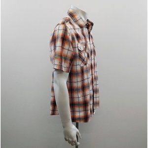 Elixir Men's Orange Blue Plaid Button Up Shirt Size Medium Short Sleeve