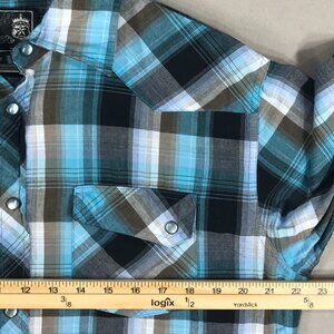 Elixir Shirt Men's Medium Blue Plaid Snap Button Down Long Sleeve Western Cowboy