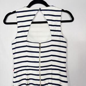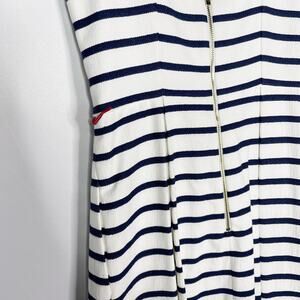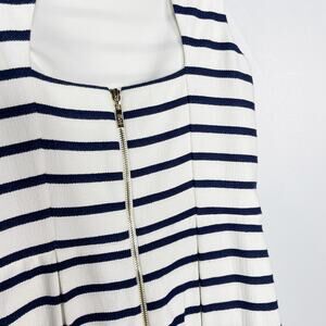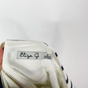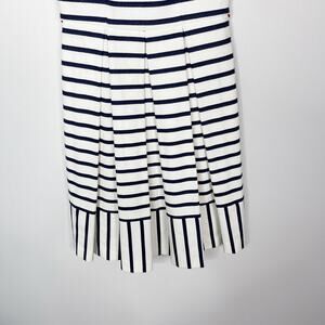 Eliza J 2 Navy Blue White Striped Fit and Flare Dress Pleated Keyhole Pockets
