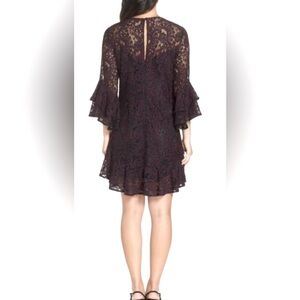 Eliza J 3/4 Poet Bell Sleeve Eggplant Lace A-line w Black Trim Detailing B7