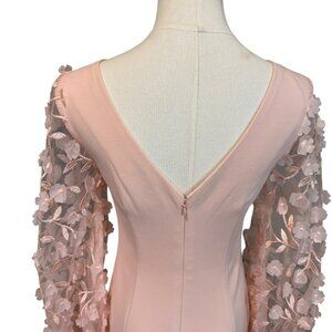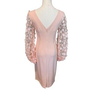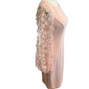 Eliza J 3D Blush Floral-Sleeve Sheath Dress. Boat neckline midi Size:2