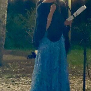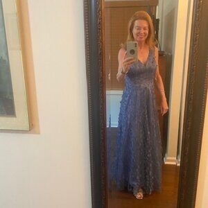 Beautiful long dress with full skirt and pockets, that I wore recently as a Mother of the Bride dress. Stunning on. Only worn once and in perfect condition. If you don't want it floor length, you can easily cut the outside net layer with scissors. Originally paid $246. Features are: