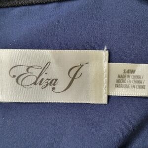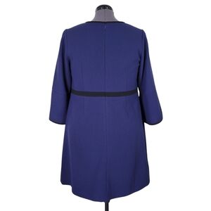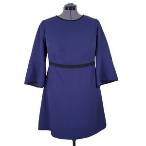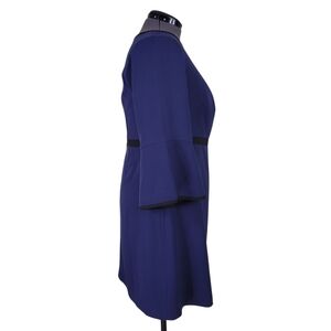 Eliza J A Line Dress Size 14W Blue Black Trim 3/4 Bell Sleeves Drop Waist Lined
