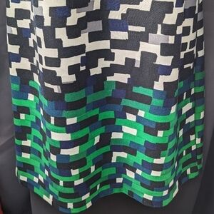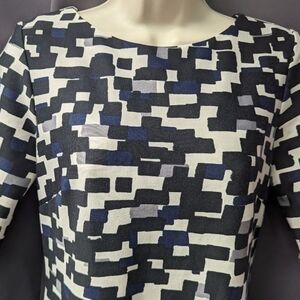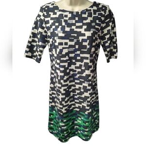 This dress is a medium weight knit material. Features a zippered back. The sleeves are 3/4 length. Light fuzzing and pilling throughout. Please see photos for details.