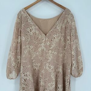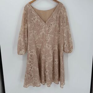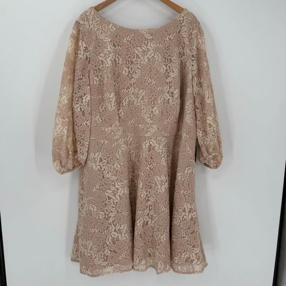 Eliza J Bateau Neck Lace Fit & Flare Knee Length Dress Pink Plus Women 24W