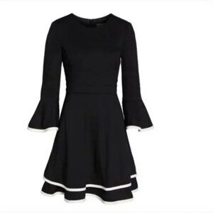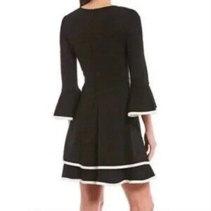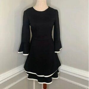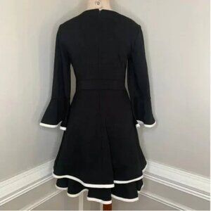 Eliza J Bell Sleeve Ruffled Ponte Knit Dress Black with White Trim Size 4