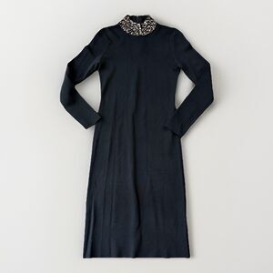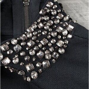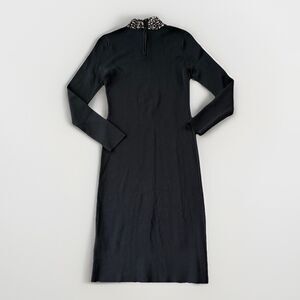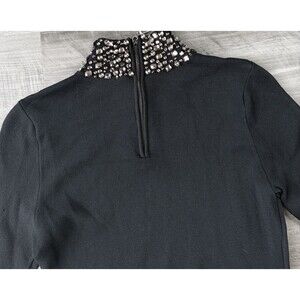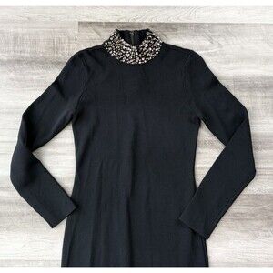 Eliza J Black Bodycon Knit Midi Dress Size M Mock Neck Rhinestone Long Sleeve